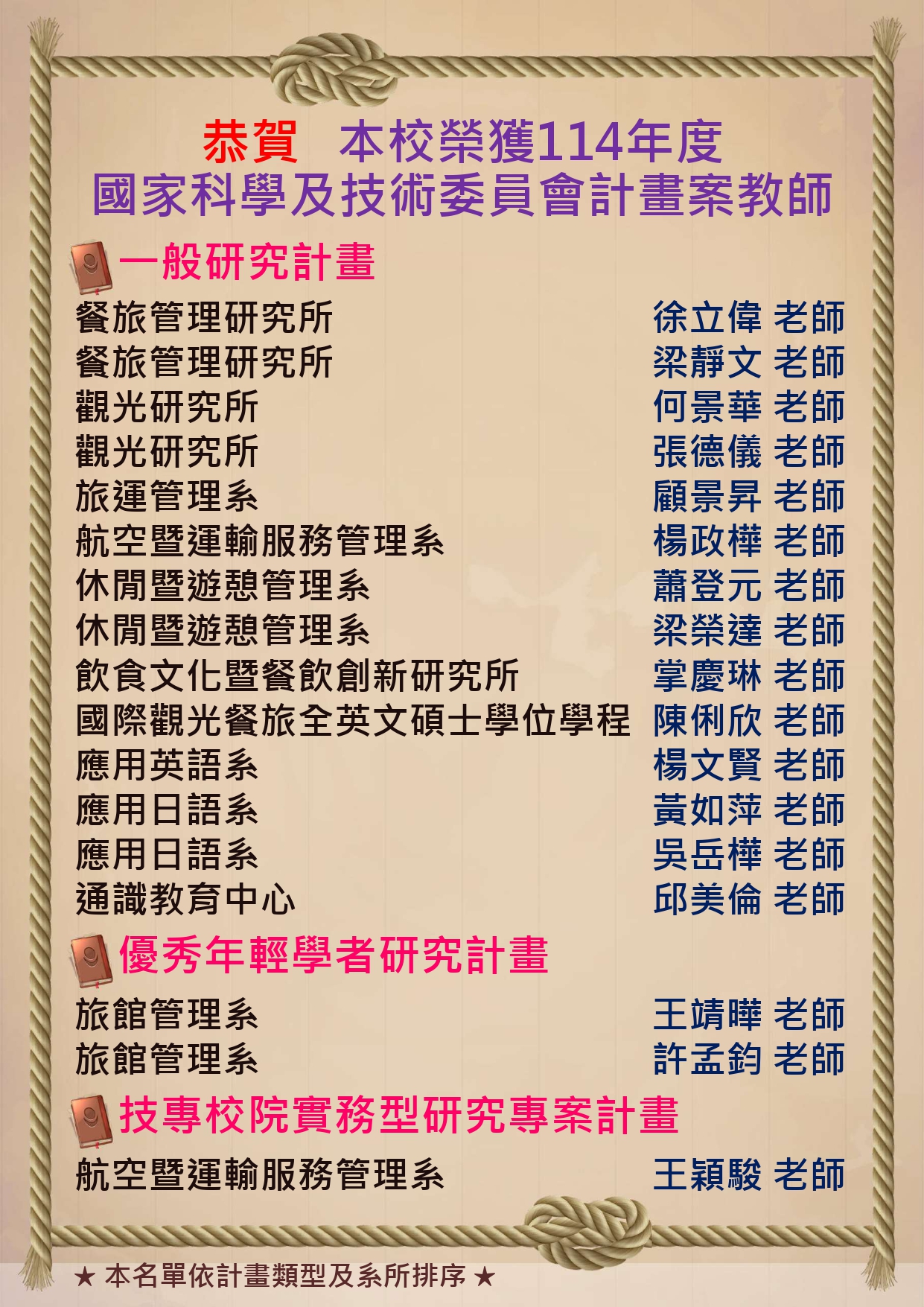 恭賀!本院教師榮獲114年度國家科學及技術委員會計畫案教師!